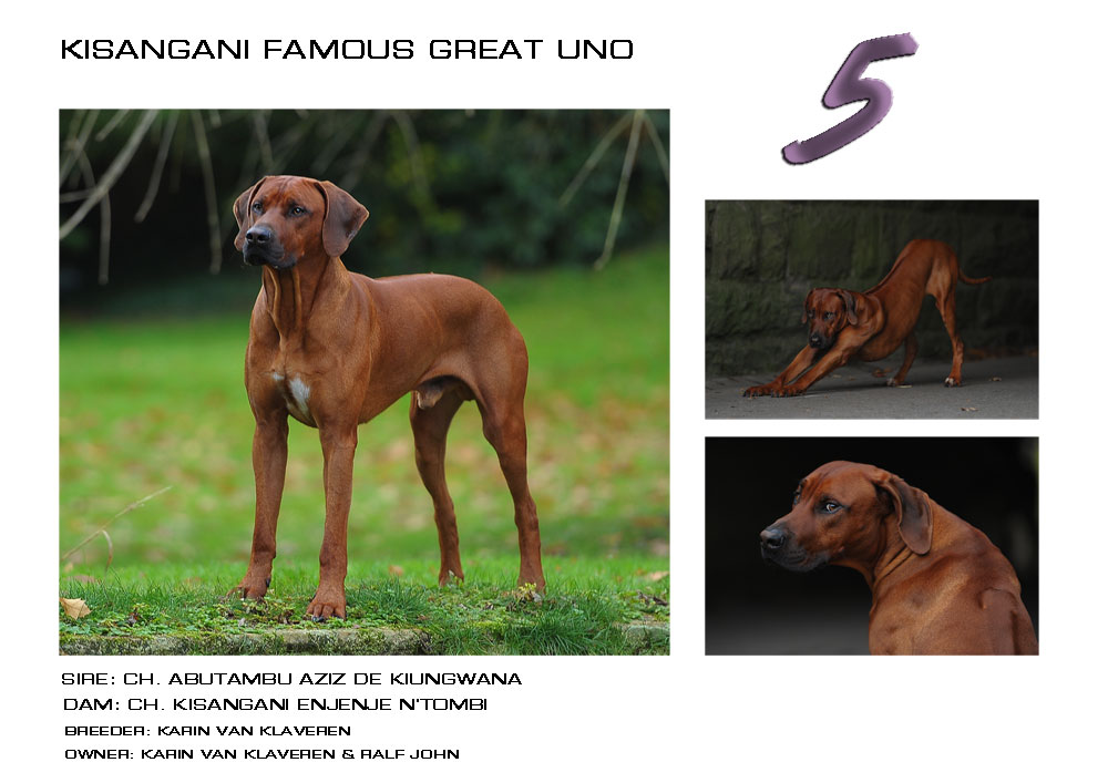 Wir freuen uns über das schöne Ergebnis unseres Rüden Kisangani Famous Great Uno, der am 17.02.2013 in Hoogstraten (Belgien)